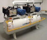 - Módulo de compresión tipo abierto-sobre tanque Los compresores individuales tipo Scroll son montados sobre el tanque y se denomina de tipo abierto, la composición mínima es de dos compresores Scroll en cumplimiento de la norma para uso medicinal. También es usual hasta tres compresores sobre tanque